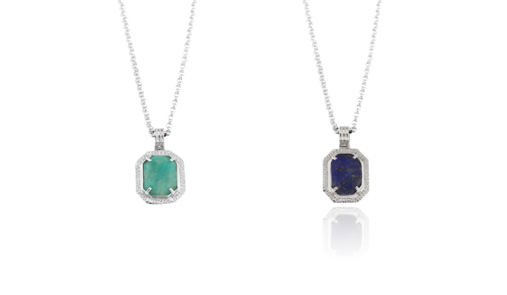 Shop Our Amazona Pendants handcrafted in Sterling Silver and the Unique vibrant gemstones in Amazonite and Sodalite.