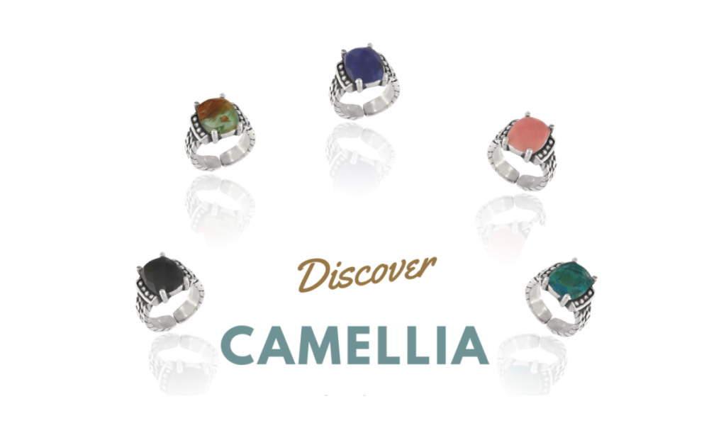Select our collection of Camellia Earrings in different meaningful gemstones.