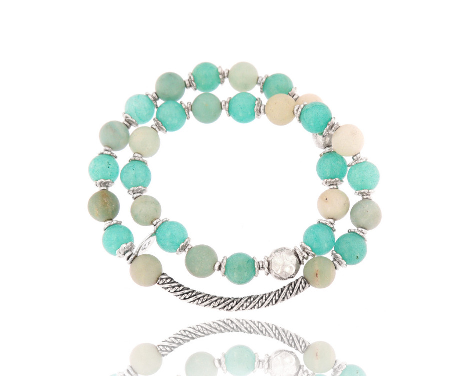 You and your outfit will love this wrap around bracelet with Amazonite and Andean Opal beads.