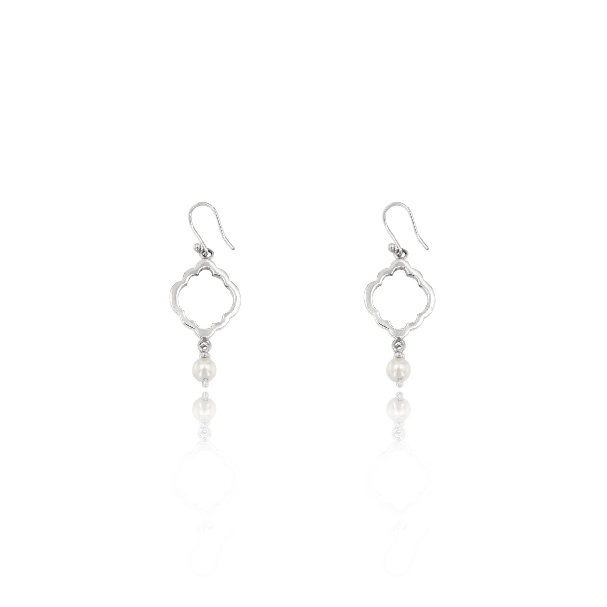 The Zara pearl hanging earrings symbolize wisdom, purity generosity and integrity.