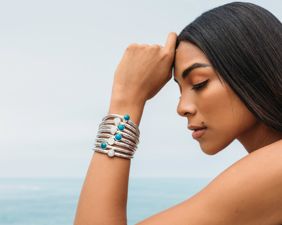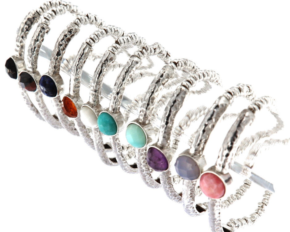 The Caribbean Bracelet comes in a variety of bright and beautiful gemstone colors that are inspired by the warm turquoise waters, sandy shores, green palm trees, and different color cocktails found in the Caribbean.