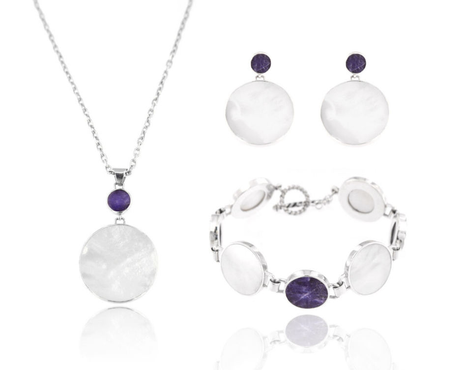 Mother Of Pearl, Sodalite, and a classic shape all come together for a bold and summery look that you can style for day or night.