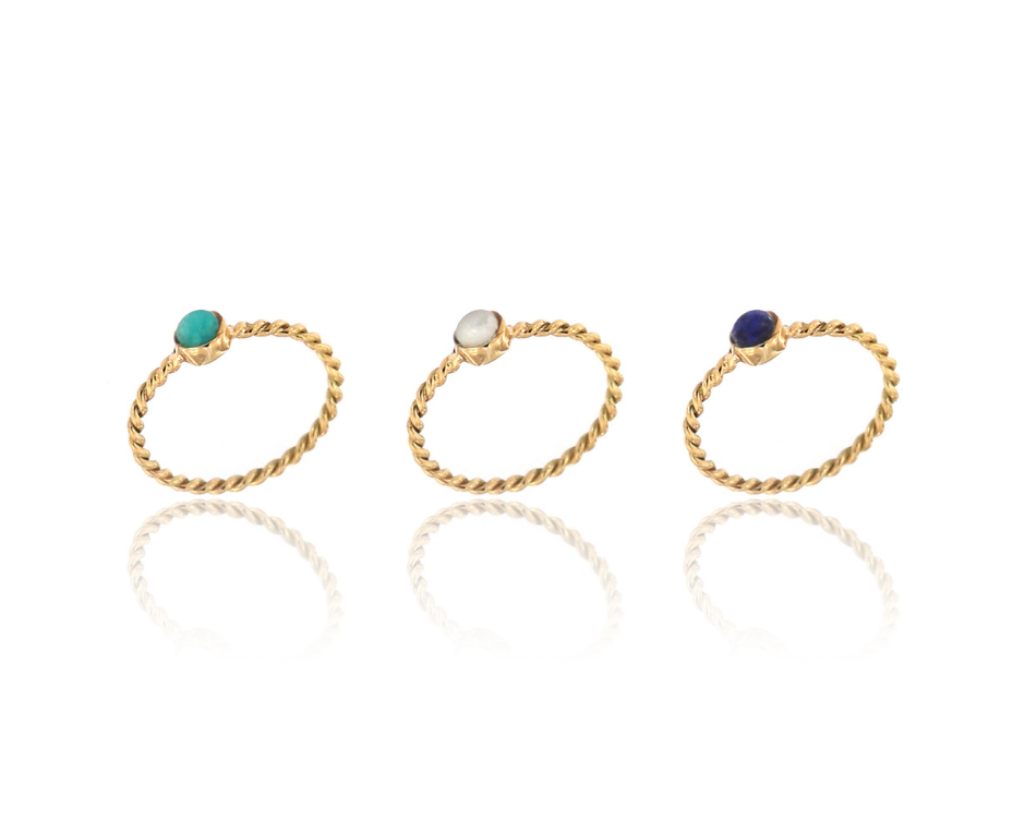 Our newest arrival is the Stackable Ring in 14k Yellow Gold. Choose from Amazonite, Mother of Pearl, and Sodalita.